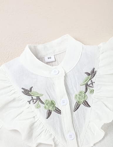 oklady 女童衣服褶皱花卉刺绣衬衫和短裤套装
