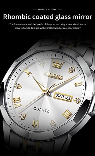 OLEVS 男式钻石商务礼服模拟石英不锈钢防水夜光日期双色奢华休闲腕表