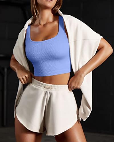 OQQ 女式 3 件套背心罗纹无缝锻炼衬衫瑜伽露脐上衣