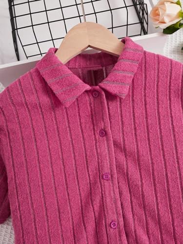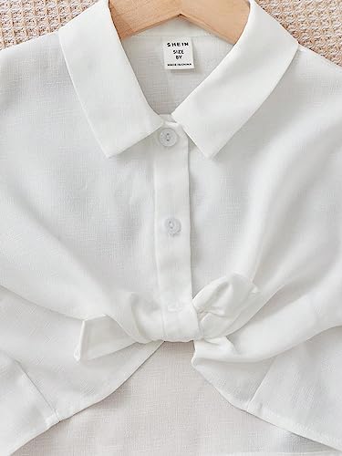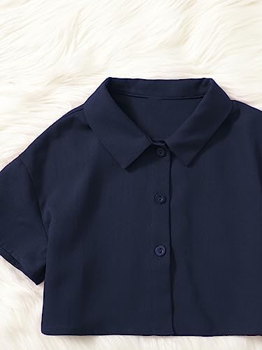 OYOANGLE 女童 2 件套短袖系扣衬衫露脐上衣和阔腿裤连身衣套装
