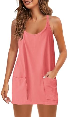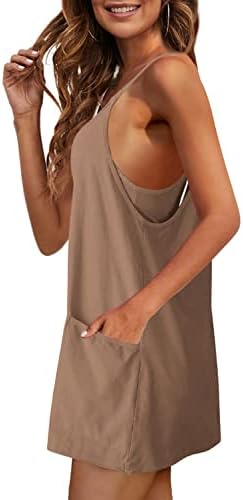 Panadila 女式夏季无袖迷你连衣裙 V 领细肩带背心裙运动短款连衣裙带口袋