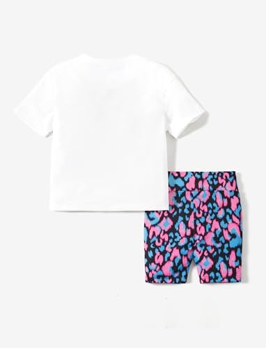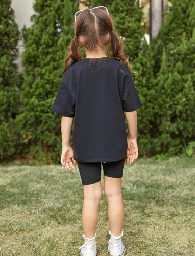 PATPAT 儿童女孩 2 件套衣服套装超大 T 恤短袖上衣和图案印花骑行短裤夏季服装