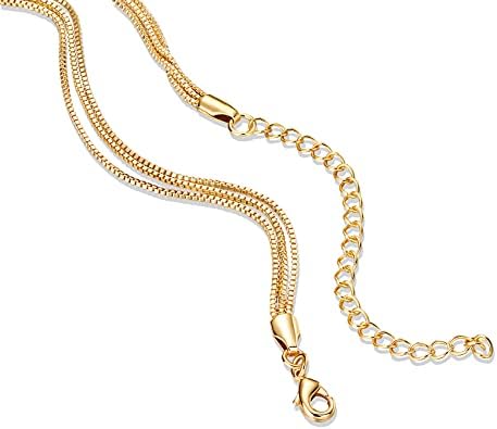 PAVOI 14K 镀金精致分层项链 女式 | 蛇链、锁链、回形针分层链 | 时尚分层项链