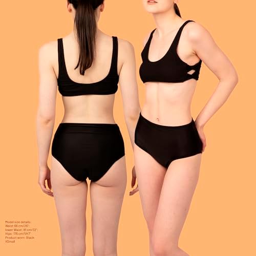 Period Swimwear - 黑色月经防漏比基尼下装 - 高腰游泳下装 适合青少年、女孩、女士