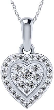 Pretty Jewels 925 纯银 0.66 克拉圆形切割天然钻石心形吊坠耳环和吊坠项链带 45.72 厘米链子 - 钻石颜色:H-I,净度:I1-I2, 石 金属, 钻石