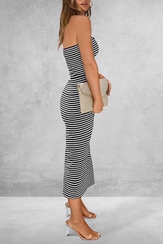 PRETTYGARDEN 女式夏季紧身超长抹胸连衣裙罗纹无肩带侧开叉长款休闲优雅派对礼服