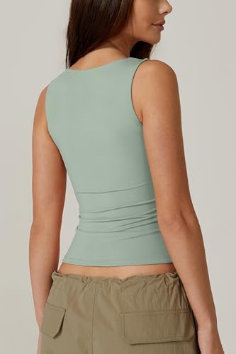QINSEN 女式方领无袖双层背心基本款紧身 T 恤