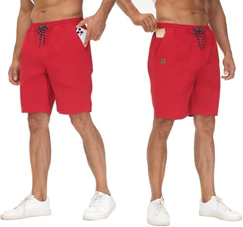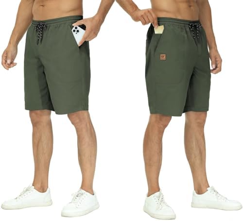 QPNGRP 男式弹力腰休闲短裤,带 5 个口袋,包括 1 个拉链口袋