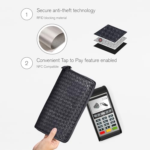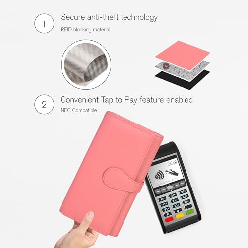 真皮女士钱包皮革带 RFID 屏蔽 - 三折卡包设计师女士手拿包带证件窗钱包