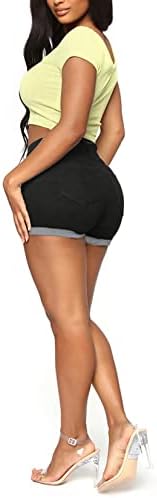 Romastory 女式高腰牛仔短裤舒适弹力运动牛仔短裤