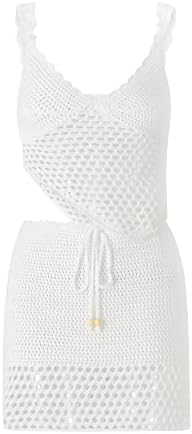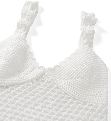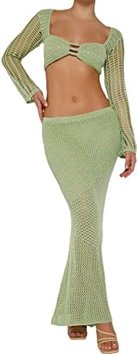 Sawden Women Y2k Crochet Knitted Two Piece Outfits Hollow Out Cami Top and High Waist Mini Skirt Beach Wear