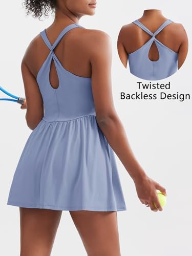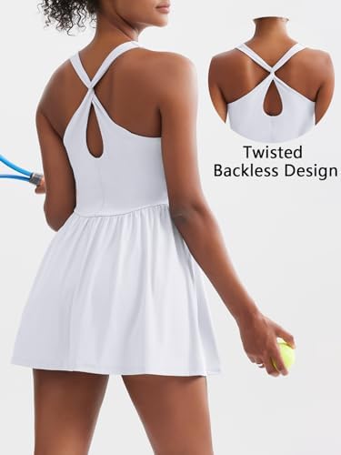 Sexyasii 女式夏季运动网球裙,内置短裤和文胸方领锻炼高尔夫连衣裙