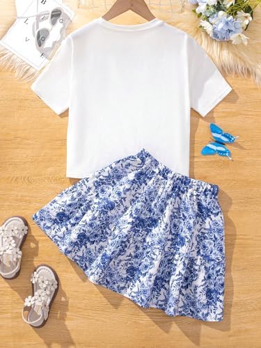 SHENHE 女童两件套花卉短袖纽扣露脐 T 恤和裙子套装