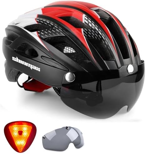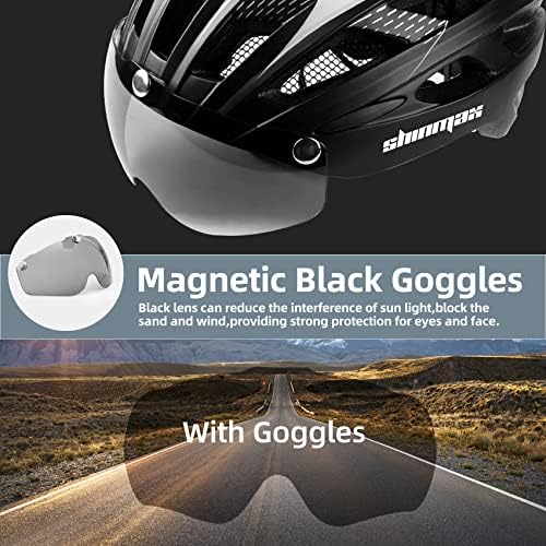Shinmax 自行车头盔,CPSC/CPC 自行车头盔适用于成年男士女士带磁性护目镜和 LED 背灯自行车头盔可调节 SM-T69
