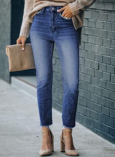 luvamia 女式七分牛仔裤高腰修身直筒弹力牛仔七分裤贴边口袋休闲七分牛仔裤