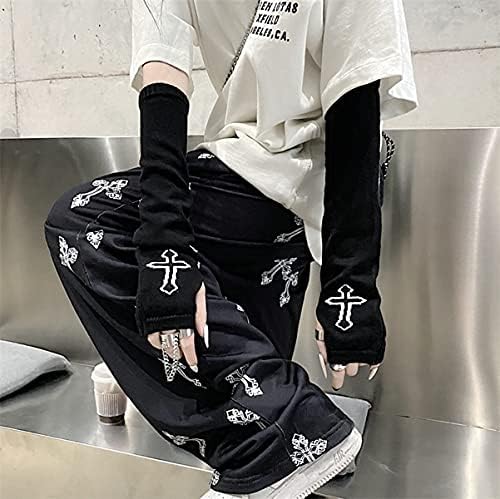 滑板青蛙女式手套哥特袖套酷黑月亮十字架印花嘻哈袖套