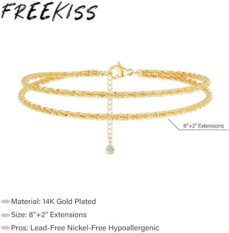 女式纯银踝关节手链:精致分层防水脚链女士可调节女式脚链套装可堆叠绿松石费加罗串珠古巴链脚链沙滩珠宝