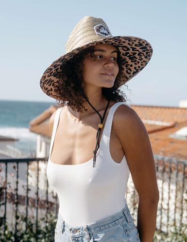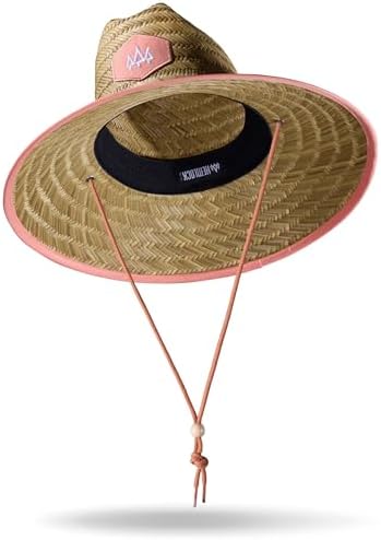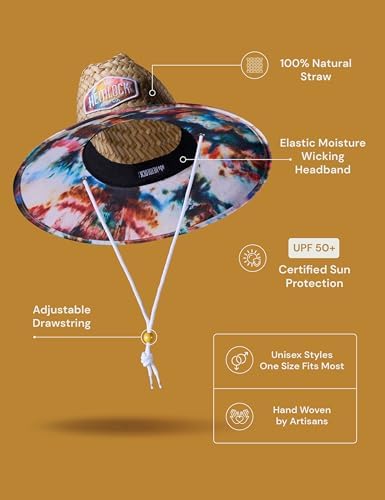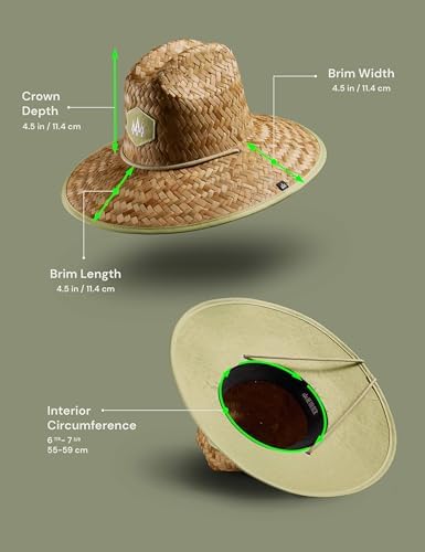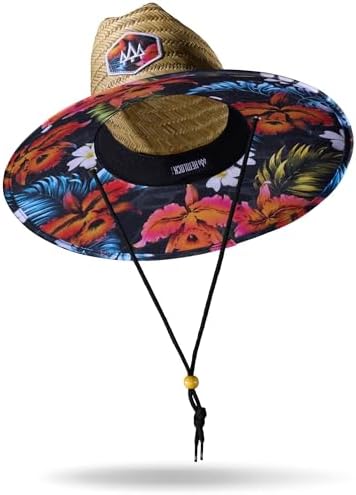 男式和女式草帽 | 救生员帽、沙滩帽和太阳帽 | UPF 50+ 宽帽檐防晒 | 均码 | 下摆