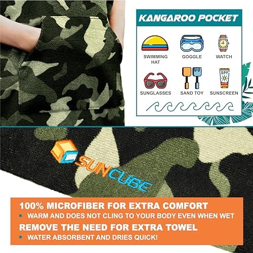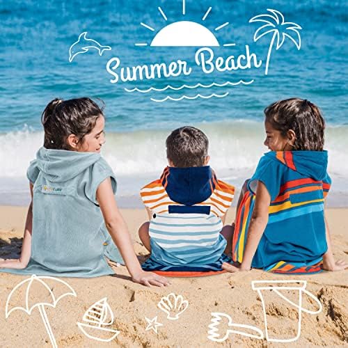 SUN CUBE 儿童换尿布长袍冲浪斗篷,幼儿沙滩巾,超细纤维连帽可穿戴游泳毛巾男孩女孩3-8岁