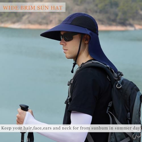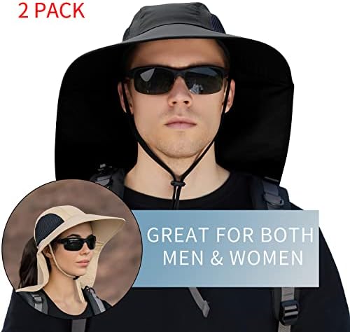 男式女式遮阳帽,带颈部翻盖,UPF 50+ 防紫外线徒步钓鱼帽,宽帽檐太阳帽,男女均适用