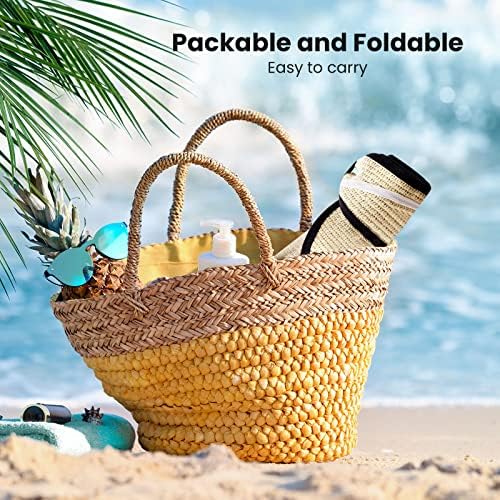 Straw Handbags 钱包斜挎包口袋书包休闲编织沙滩包夏季流浪汉嬉皮别致手提包带链