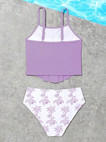 SweatyRocks 女童两件套泳衣图案印花荷叶边可爱比基尼套装泳衣