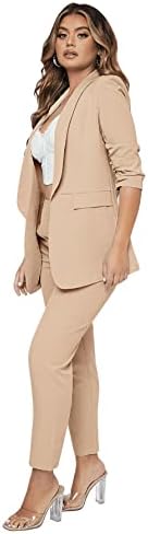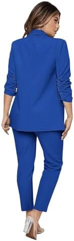 SweatyRocks 女式 2 件套纯色褶饰袖西装外套和裤子商务办公室套装套装