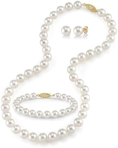 The Pearl Source 14K 金珍珠首饰套装 女式 - 淡水珍珠项链和耳环套装 带珍珠手链 | 真正的养殖珍珠