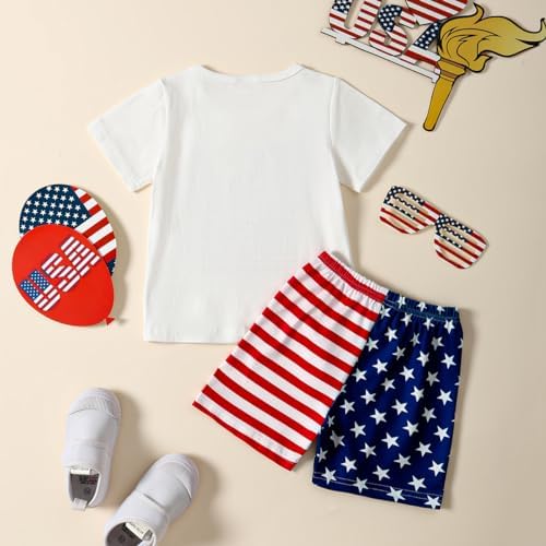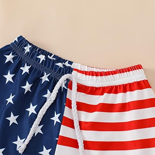 幼儿男孩 7 月 4 日服装短袖 T 恤上衣 + 美国国旗短裤男婴独立日服装