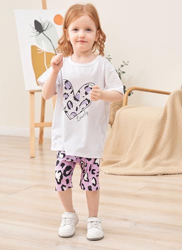 幼儿女童衣服心形印花短袖上衣 + 短裤 2 件套夏季服装套装