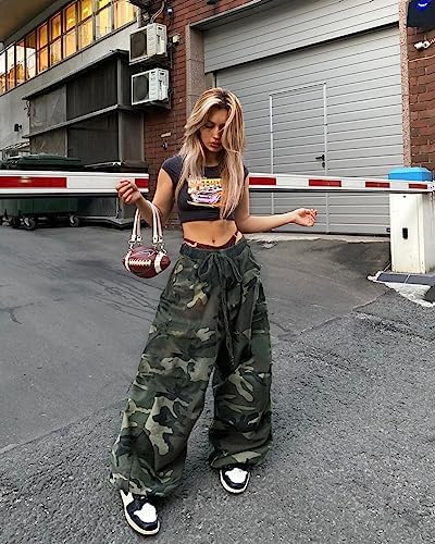 HDLTE 女式阔腿牛仔裤高腰宽松牛仔裤女式宽松男友牛仔裤牛仔裤 Y2K 90s
