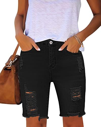 Utyful 女式夏季磨边破洞百慕大短裤做旧牛仔短裤