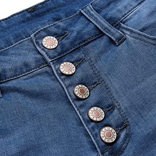 luvamia 女式七分牛仔裤高腰修身直筒弹力牛仔七分裤贴边口袋休闲七分牛仔裤