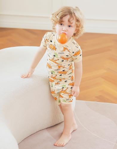 Beezizac 女童棉质过夜睡衣套装 适合小女孩和大女孩短袖套装 2 件套 PJ 尺码 4T-18