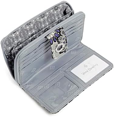 Vera Bradley 女式棉质旋转锁钱包 RFID 保护, 黑色//白色