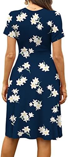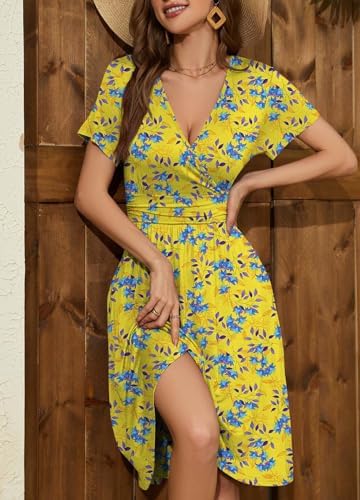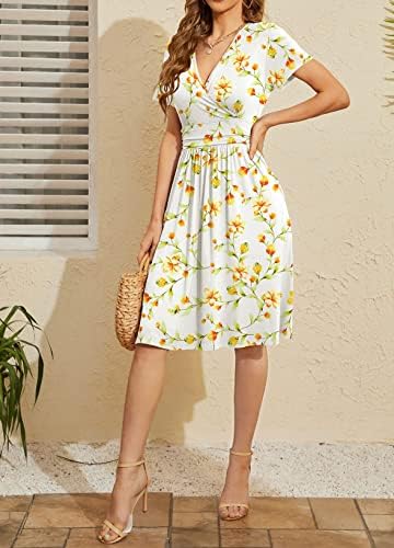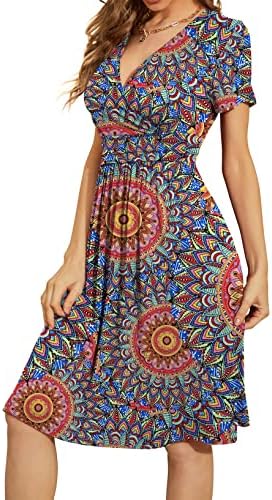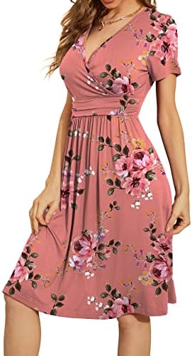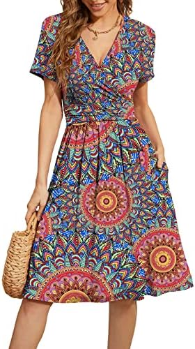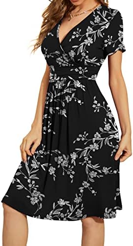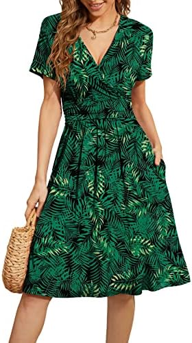 WEACZZY 女式夏季短袖休闲连衣裙 V 领花卉派对连衣裙带口袋