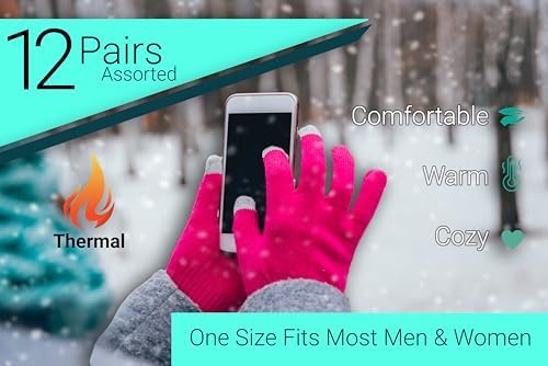 Winter Magic 手套,12 双弹性保暖针织散装包男式女式