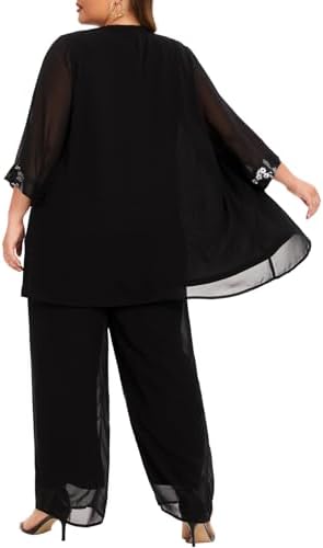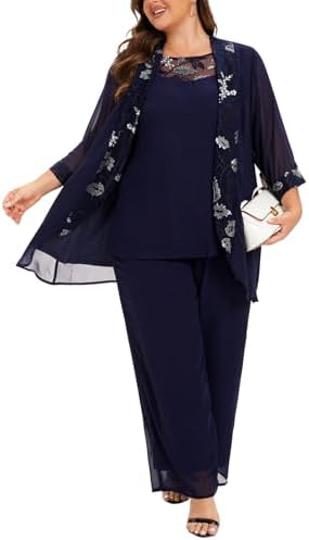 女式加大码婚礼裤套装 3 件套雪纺派对服装,适合新郎母亲新娘晚礼服