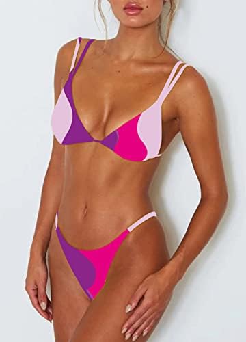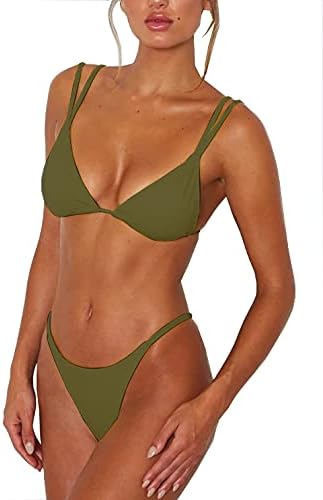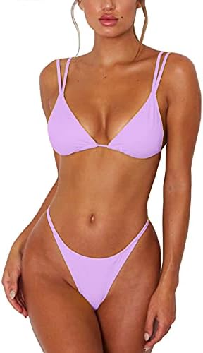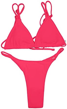 女式性感丁字裤,两件式比基尼双肩带可爱泳装三角沐浴