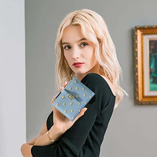 YINHEXI 女士钱包,女士钱包卡包,小双折 RFID 屏蔽钱包,可爱小皮口袋钱包,适合女士、女孩、女士迷你短钱包, 米白色, 极简主义