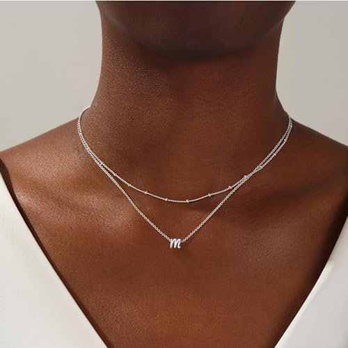 Yoosteel 分层首字母项链女士时尚 14K 镀金字母 A-Z 吊坠项链小首字母项链个性化交织字母分层金色首字母项链女士女孩珠宝