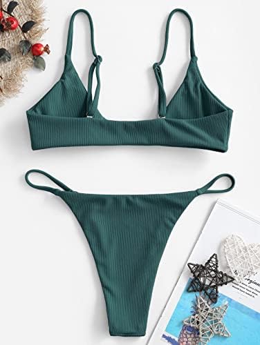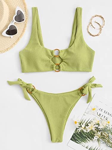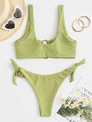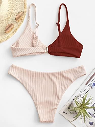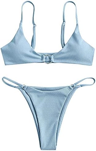 ZAFUL 女式罗纹 O 形环比基尼泳装俏皮丁字裤泳衣两件套泳衣