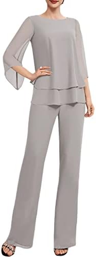 女式加大码婚礼裤套装 3 件套雪纺派对服装,适合新郎母亲新娘晚礼服